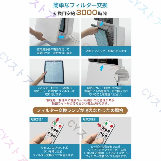 マイナスイオン放出 紫外線で空気に浮遊する菌を消滅して、マイナスイオンは花粉、ほこりなどを除去します。