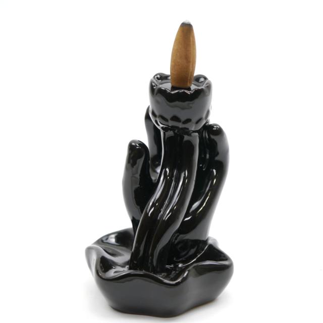 バックフローコーン香用香炉 逆流香香炉 倒流香香炉 「蓮の花と仏手」 陶器製お香たて お香立て インセンスホルダー HEMやSATYAの逆流香に