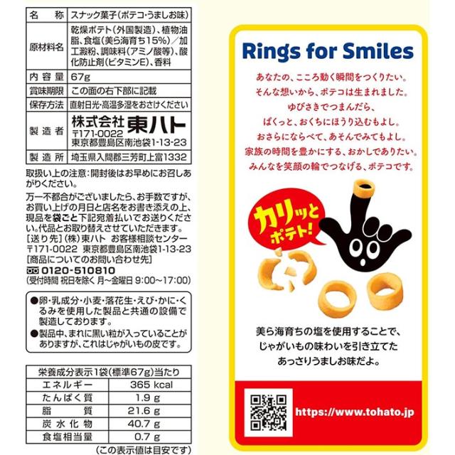 東ハト ポテコ うましお味 67g 24袋 送料無料(北海道は別途700円かかります。沖縄配送不可)