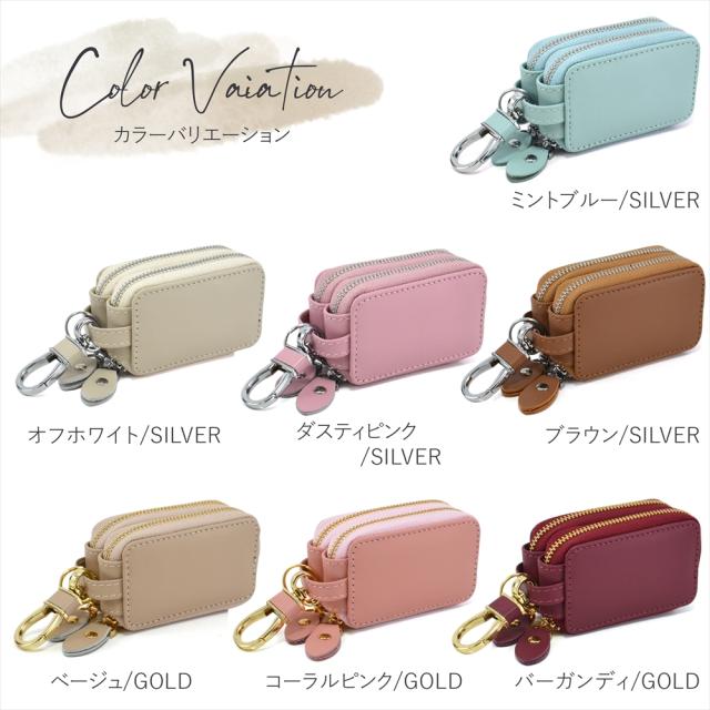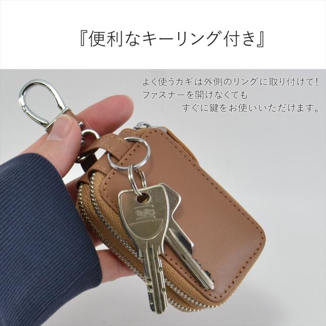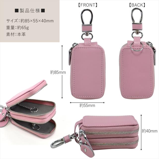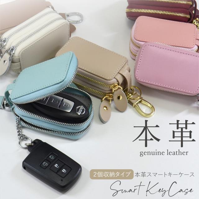 本革 キーケース 2個 レザー スマートキーケース 鍵 ダブルジッパー ニュアンスカラー レディース メンズ 皮 キーカバー リモコンキー ポケット キーリング スマートドア ポケットキー エンジンスターター 収納 シンプル 皮 革 本皮