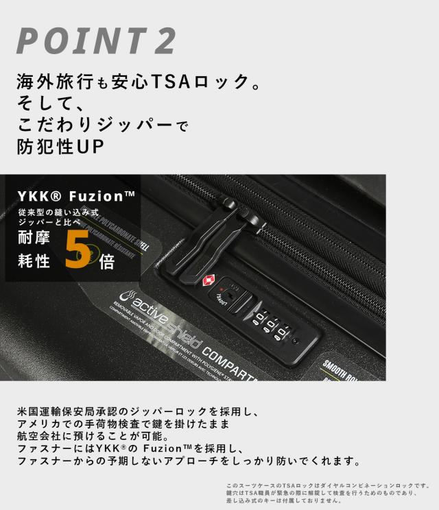 | クアドロプロ28は耐久性と機能性に優れています。汚れたアイテムと清潔なアイテムを分けて収納できる、アクティブシールド・コンパートメント、最大限にスムーズな移動を実現する、球形ホイール、耐久性の高いポリカーボネートシェルで大事な荷物を保護。快適かつスタイリッシュな旅に専念できます。 ●レーザーエッチングされたロゴと、外側に取り付けられた耐久性の高いハンドル。 ●湿気・臭気・汚れに強く、濡れたり汚れたりした衣類やギアを他のものと分けて収納できる、アクティブシールド・コンパートメント。 ●自動車のガラスをリサイクルした素材で作られたコンパートメントは、取り外すことができるので掃除しやすく、ポリジン社独自の抗菌加工で、臭いの原因となるバクテリアの増殖を防止。 ●独自のクアドロ球形 4 輪構造のホイールシステムにより、どの方向にもスムーズな走行が可能。 ●傷がつきにくいテクスチャー加工を施した、マット仕上げのプレミアム・ポリカーボネートシェルが大事な荷物を保護。 ●3.8cm 拡張可能なジッパー式エクパンションパネル。 ●TSA(米国運輸保安局)承認のジッパー式コンビネーションロック。 ●ボタン式の軽量多段階トロリーハンドル。 ●YKK® の織り込み式 Fuzion™ ジッパーは、従来型のモデルで使用されている、縫い込み式ジッパーの 5 倍の耐摩耗性を実現。 ●内部の大きなメッシュジッパーポケットとコンプレッションパネル。 ●持ちやすさを考慮された、上部とサイドのグラブハンドル。 ●簡単に荷物を追跡することができる AirTag ホルダー。 |
