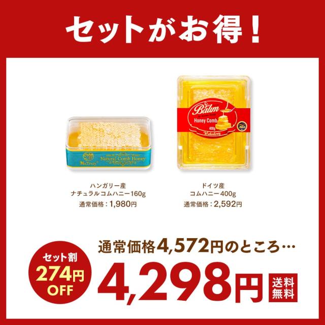 巣蜜 はちみつ コムハニー 2種セット 合計560g ハンガリー産160g ドイツ産400g ハニーコム コームハニー