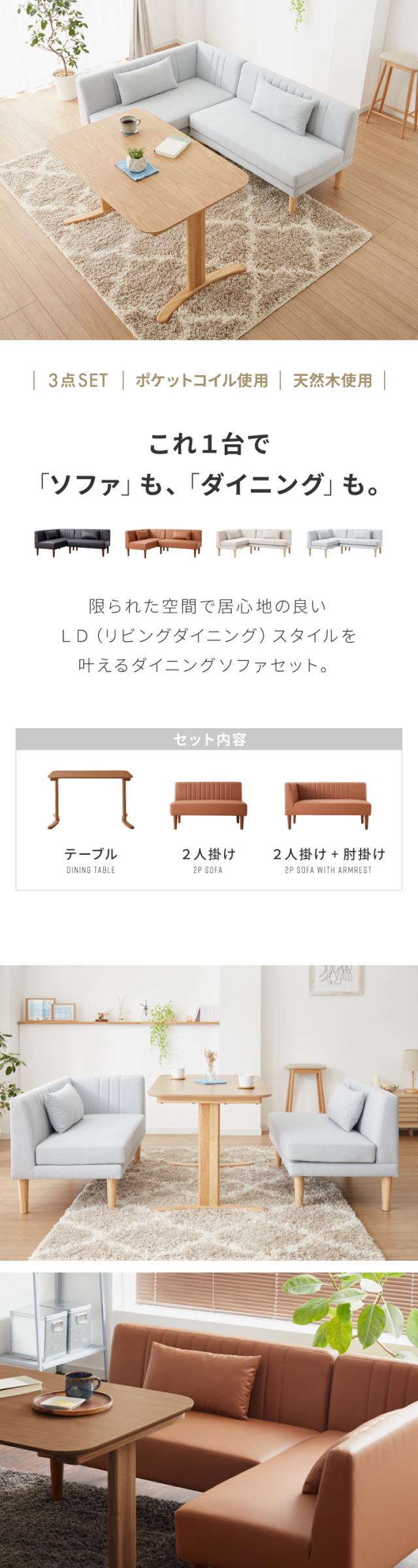 2点セット/ソファ×2 | 3点セット/ソファ×2+T字脚テーブル | 3点セット/ソファ×2+昇降式テーブル |