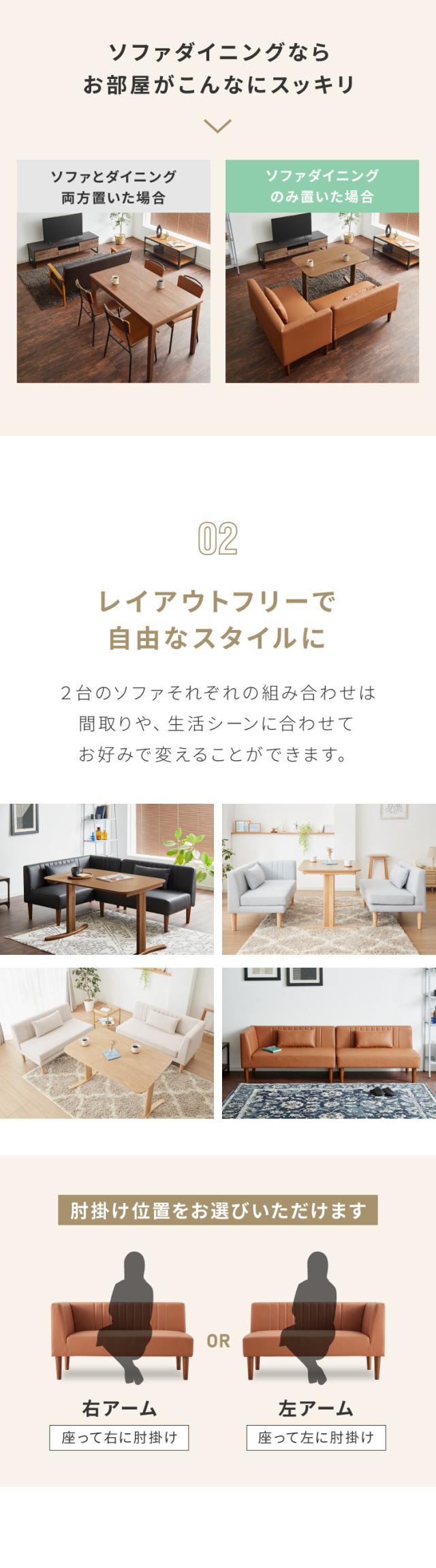 ソファの配置を変えることで、お部屋の間取りや生活シーンに応じたレイアウトが可能です。