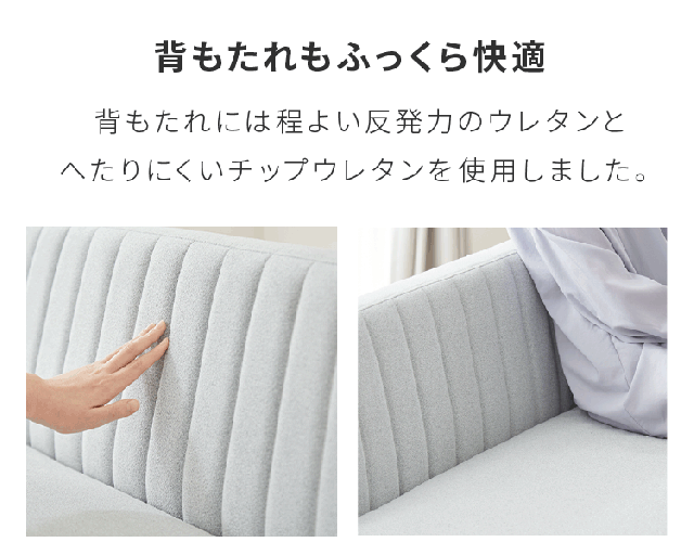 背もたれにはへたれにくいチップウレタンを採用。