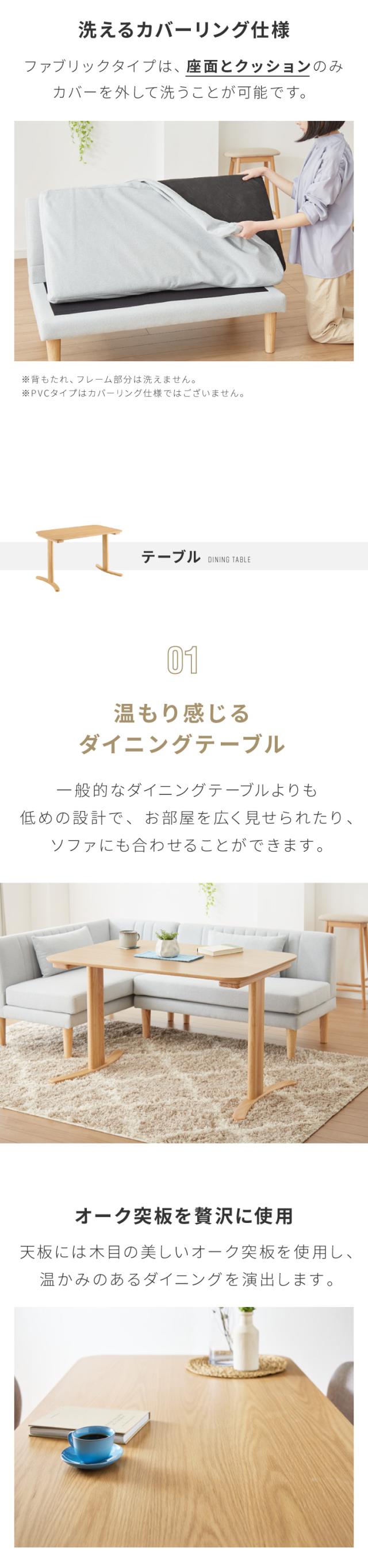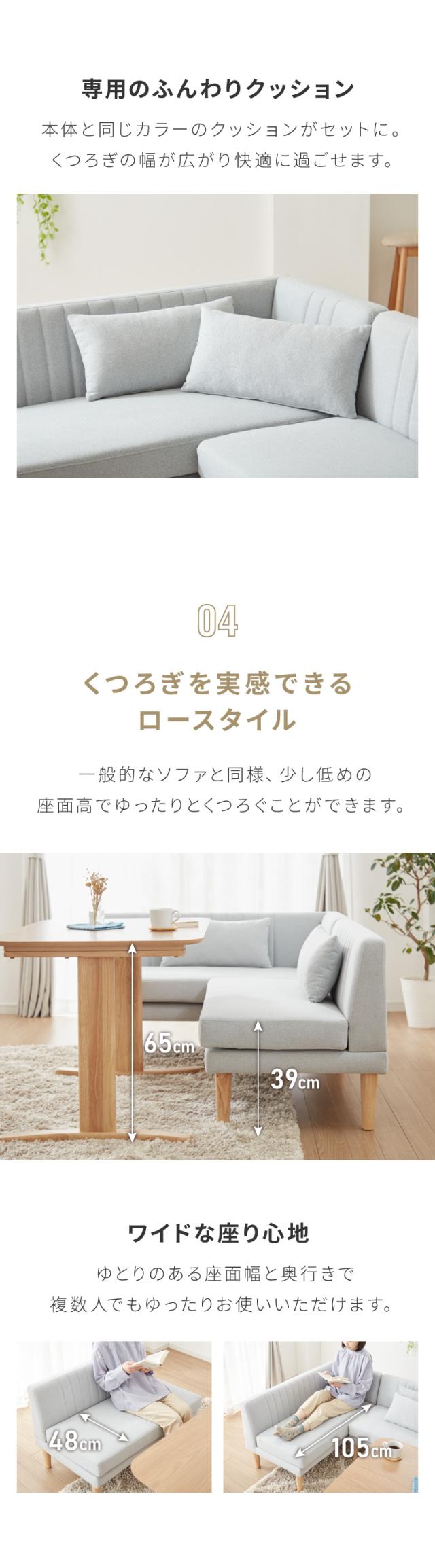 限られたスペースを有効活用できるリビングダイニングスタイルのL字ソファ。