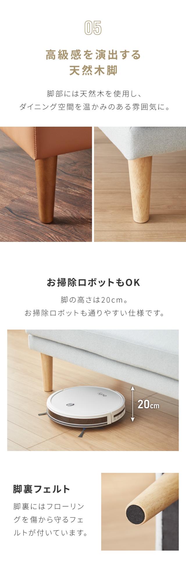 脚部には質感のある天然木を採用。高さ20cmでお掃除ロボットも対応可能です。
