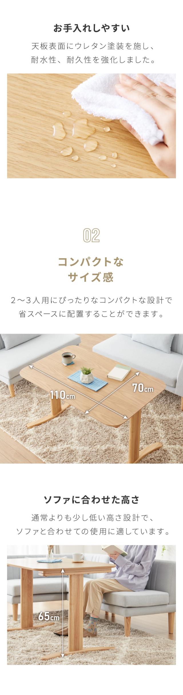 テーブルの高さは65cmと低めに設計しており、お部屋を広く見せます。