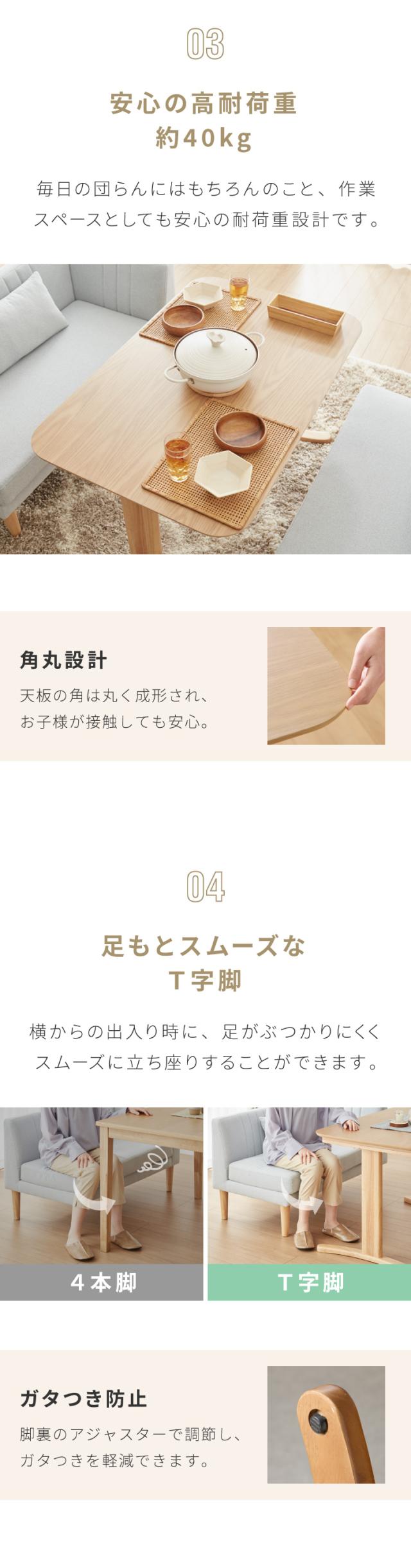 140×80cmの天板サイズは、4人でもゆったり使用できます。