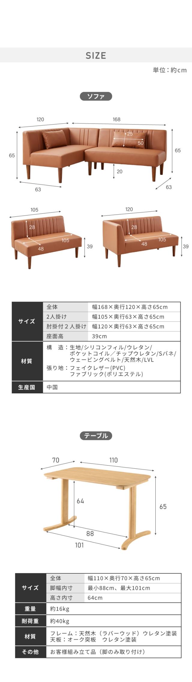 [全体サイズ]幅168×奥行120×高さ65(座面高さ39)cm