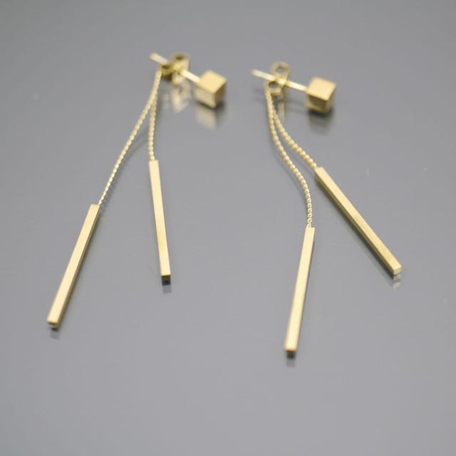 | サイズ | 本体サイズ24.8mm×1.3mm/チェーン30mm&19mm/ピアスキューブ部分3.7mm ポスト太さ0.7mm 長さ11mm |