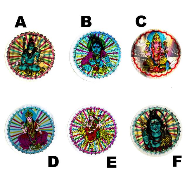 インドの神様ステッカー キラキラ丸形6種類 エスニック アジアン雑貨 ポスト投函配送選択可能です