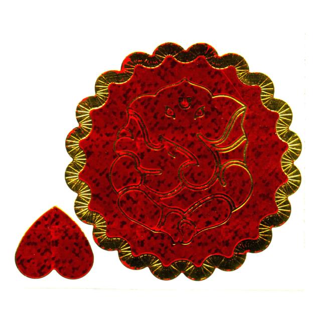 インドの神様ガネーシャのレッドメタリックキラキラステッカー エスニック アジアン雑貨 ポスト投函配送選択可能です