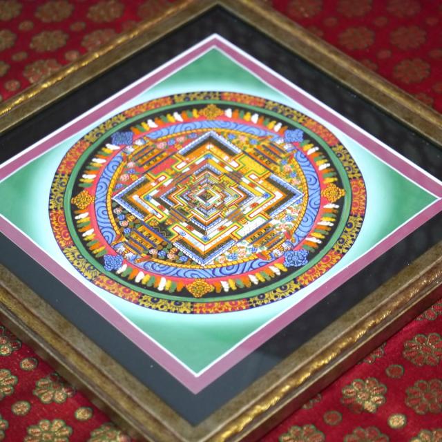 タンカ職人肉筆 手書きのチベタン タンカ 額装250角 カーラチャクラ 時輪タントラ 1点物 密教 アジアン雑貨