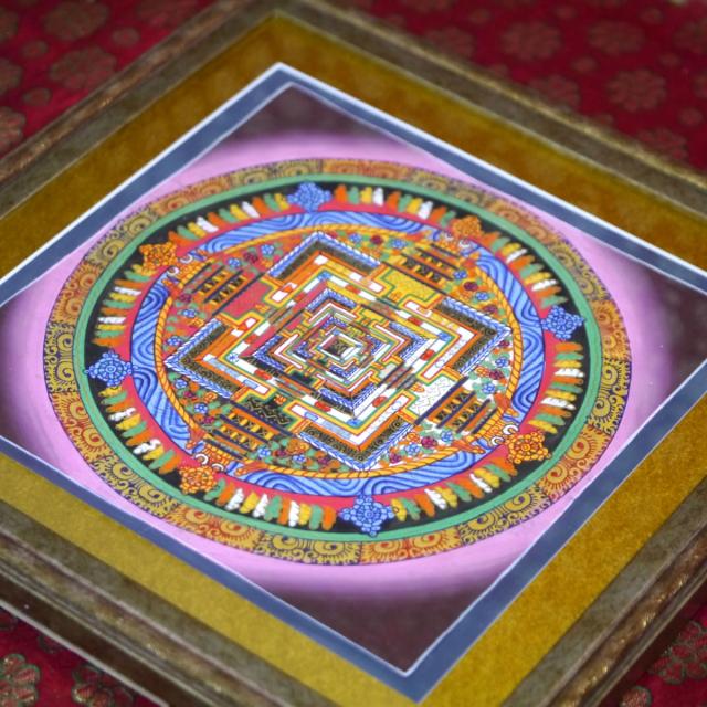 タンカ職人肉筆 手書きのチベタン タンカ 額装250角 カーラチャクラ 時輪タントラ 1点物 密教 アジアン雑貨