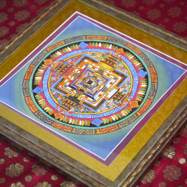 タンカ職人肉筆 手書きのチベタン タンカ 額装250角 カーラチャクラ 時輪タントラ 1点物 密教 アジアン雑貨