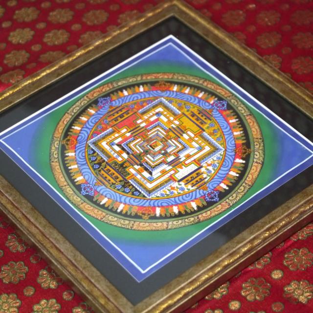 タンカ職人肉筆 手書きのチベタン タンカ 額装250角 カーラチャクラ 時輪タントラ 1点物 密教 アジアン雑貨