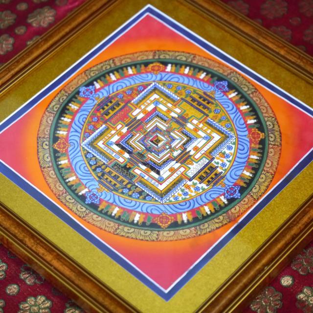 タンカ職人肉筆 手書きのチベタン タンカ 額装250角 カーラチャクラ 時輪タントラ 1点物 密教 アジアン雑貨