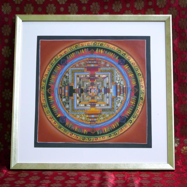 タンカ職人肉筆 手書きのチベタン タンカ 額装300角 カーラチャクラ 時輪タントラ 1点物 密教 アジアン雑貨