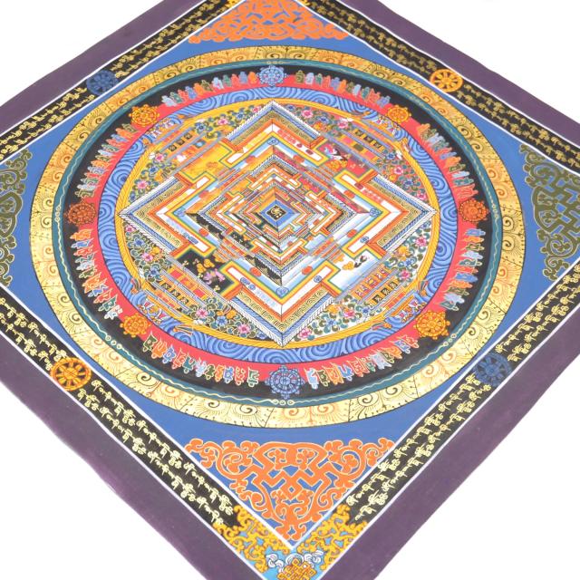 タンカ職人肉筆 手書きのチベタン タンカ 大判サイズ約53cm×約53cm カーラチャクラ 時輪タントラ 1点物 密教 アジアン雑貨
