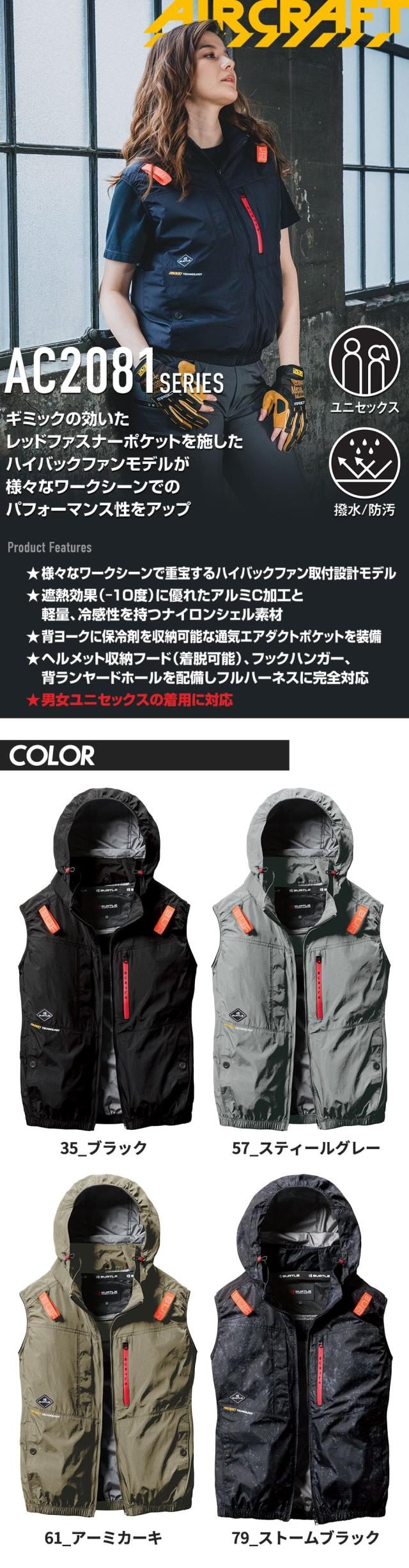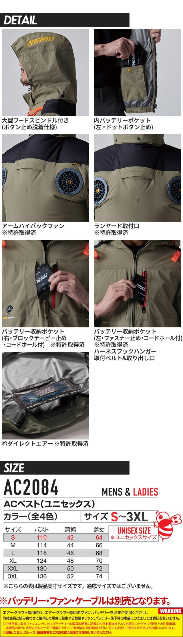 【即日発送】EFウェア バートル BURTLE AIRCRAFT エアークラフト ACベスト ファン無し 2025年モデル AC2084 作業着 作業服 春夏 フルハーネス対応 ハイバックファン 防汚 撥水 UVカット 遮熱 ヘルメット対応フード