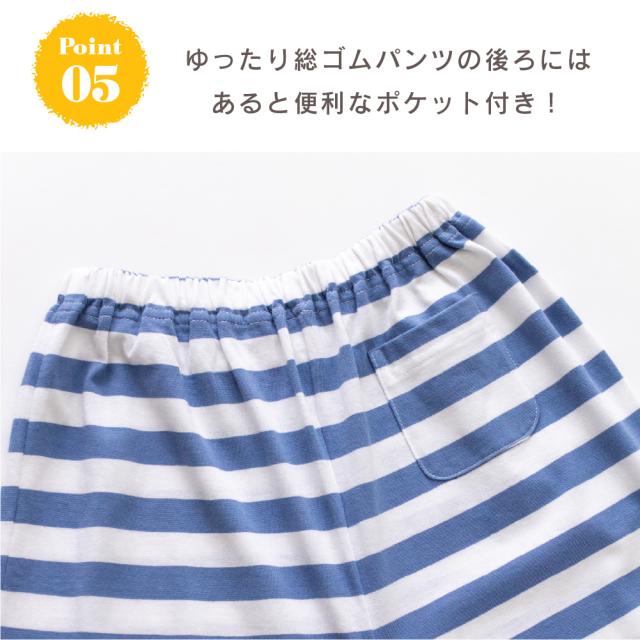 ボーダーパンツの後ろにはポケット付きでちょっとした時に便利なポイント♪