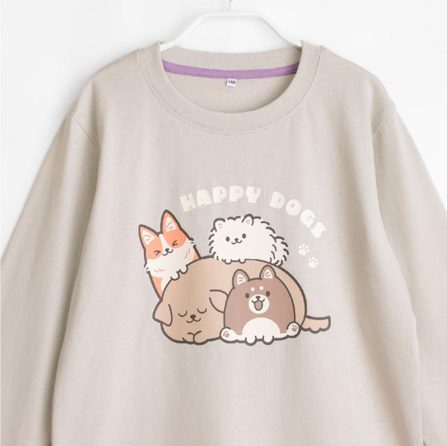 大きなワンちゃんのプリントはやさしいナチュラルカラーで可愛すぎないデザインに。