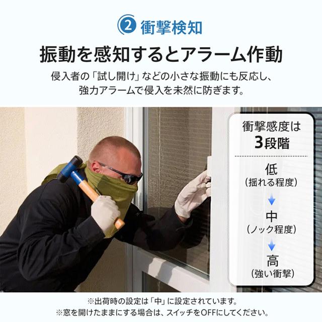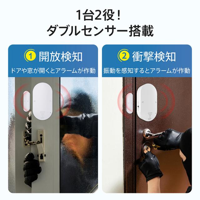 ■ダブルセンサー搭載!開放検知と衝撃検知でしっかり防犯できます。