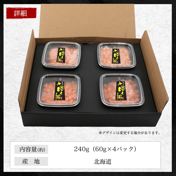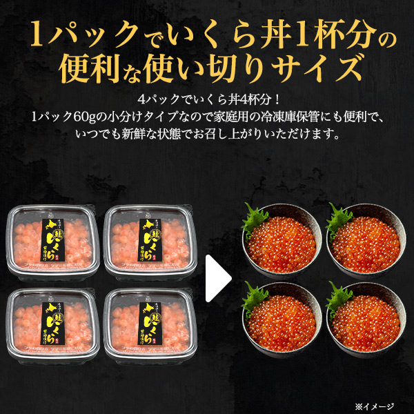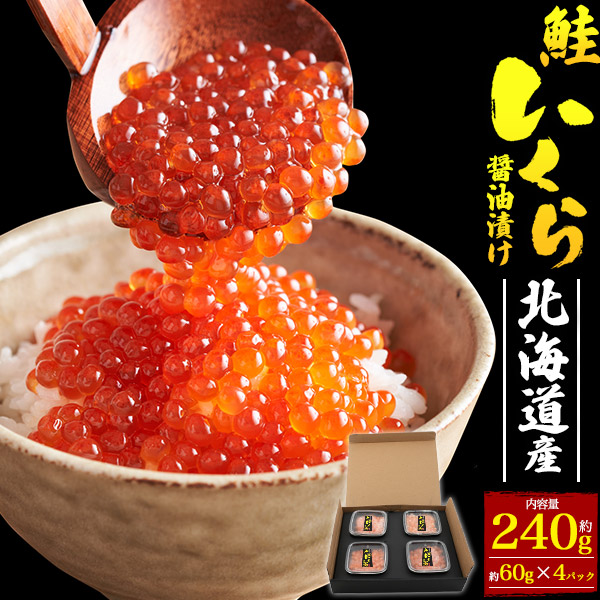 鮭いくら醤油漬け 240g(60g×4パック)北海道産 いくら しょう油漬け 小分けパック 1パックいくら丼1杯分 国産 日本産 味付け イクラ 内祝 御祝 御礼 誕生日 ギフト グルメ いくら丼 海鮮丼 こどもの日 手巻き寿司 ちらし寿司 具材 食材 トッピング 贈物 冷凍 クール便