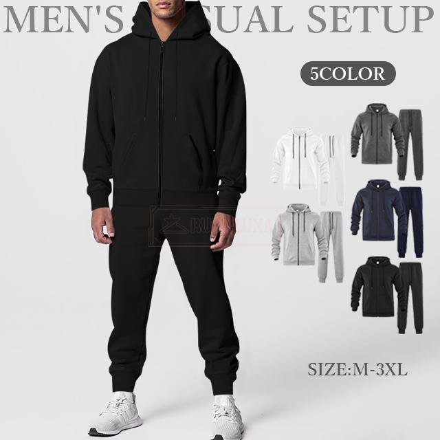 最安挑戦 冬新作 送料無料 新作 セットアップメンズ 長袖 ジップアップ ジャージ 秋冬 無地 シンプル フード付き スポーツ スウェット 上下セット ランニングスウエア トレーニングウエア 2点セット フリースセットアップ 5色展開