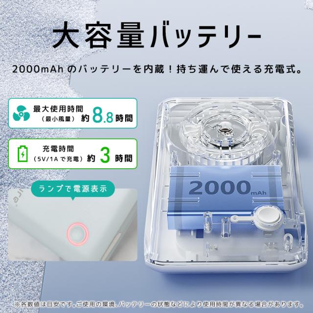 | 【大容量バッテリー】 2000mAhのバッテリーを内蔵!持ち運んで使える充電式。最大使用時間は約8.8時間。 |