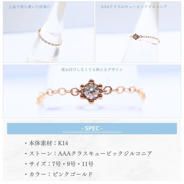 チェーンリング K14 指輪 TirrLirr レディース ピンクゴールド キュービック 40代 30代 20代