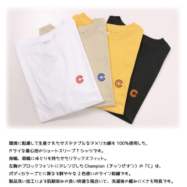 メール便 Champion チャンピオン レディース 半袖 Tシャツ CW-B302 ショートスリーブ Tシャツ CW-B302 ブロックフォント アメリカ綿 ドライ ライン刺繍 女性