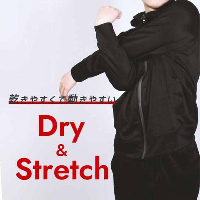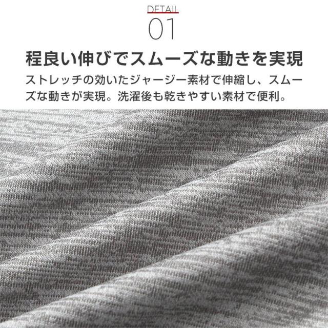 ストレッチの効いたジャージ素材で伸縮し、スムーズな動きが実現。
