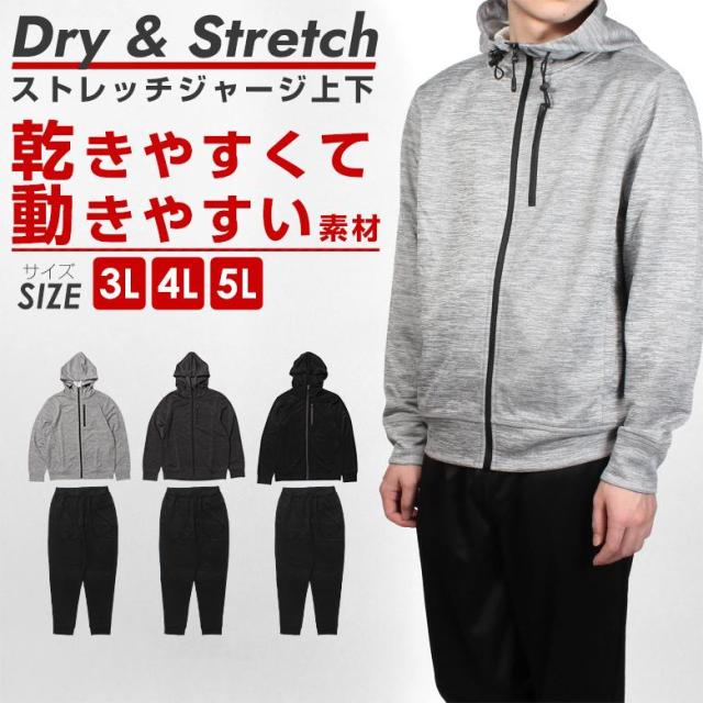 ストレッチ ジャージ上下セット 大寸 メンズ 無地 長袖 パーカー&パンツ ジャージ生地 フード ポケット