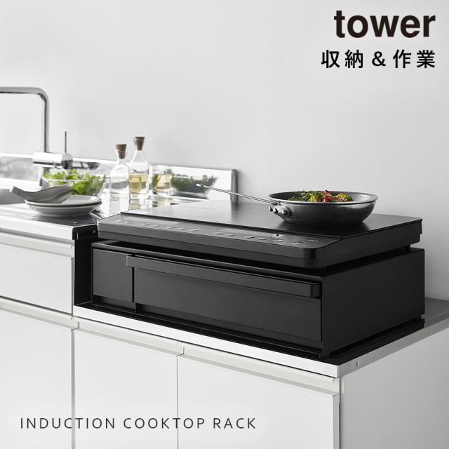 IHクッキングヒーターラック タワー 引き出し&スライドテーブル 山崎実業 tower 家電下 引き出し スライド テーブル レンジ下収納 スライドテーブル おしゃれ モノトーン ホワイト ブラック 1293 1294 メーカー直送