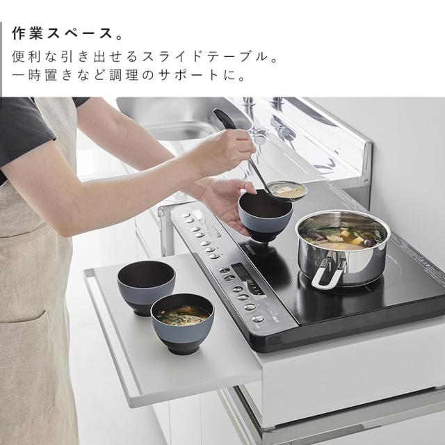 引き出せるスライドテーブルはお皿や調理小物の一時置きなどに便利。