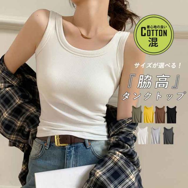 秋新作 トップス レディース 春 夏 黒 白 無地 重ね着 タンクトップ インナー ノースリーブ 脇高 [郵1]^t1092^ ▲