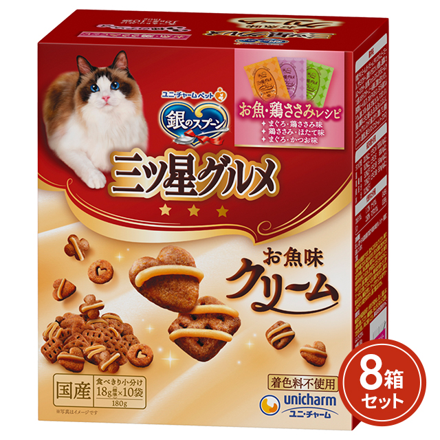 銀のスプーン 三ツ星グルメお魚味クリームお魚・鶏ささみレシピ3種のアソート 180g×8箱セット 猫 おやつまとめ買い