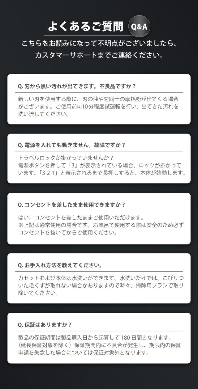 3)こちらのシェーバーは個人での使用に限ります。感染や炎症の原因となります。