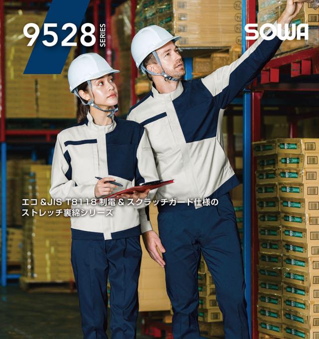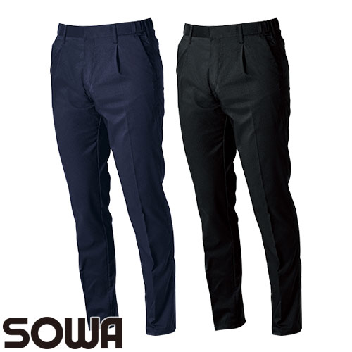 作業服 パンツ スラックス 桑和 SOWA スラックス(ワンタック 脇ゴム) 9528-09 作業着 春夏 エコ リサイクル 再生繊維 制電 ストレッチ 消臭 イージーケア 男女共用 会社 企業 工場 制服