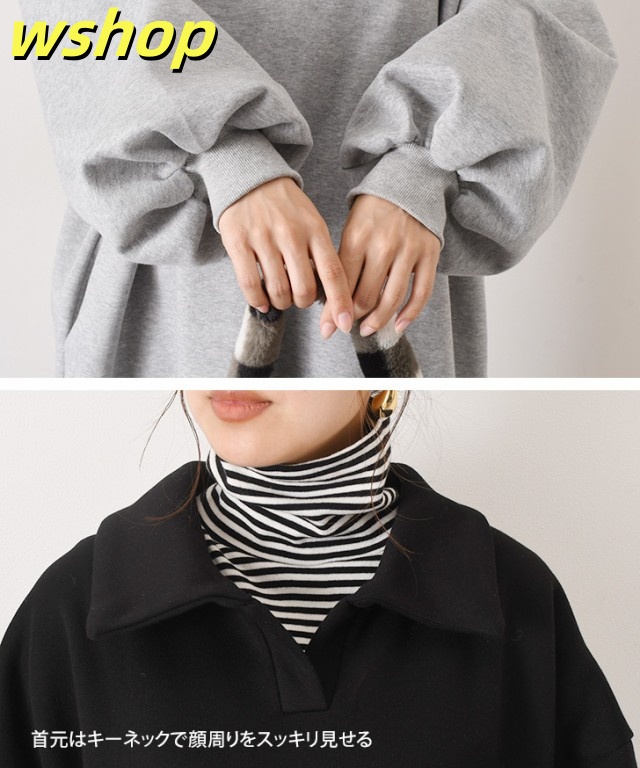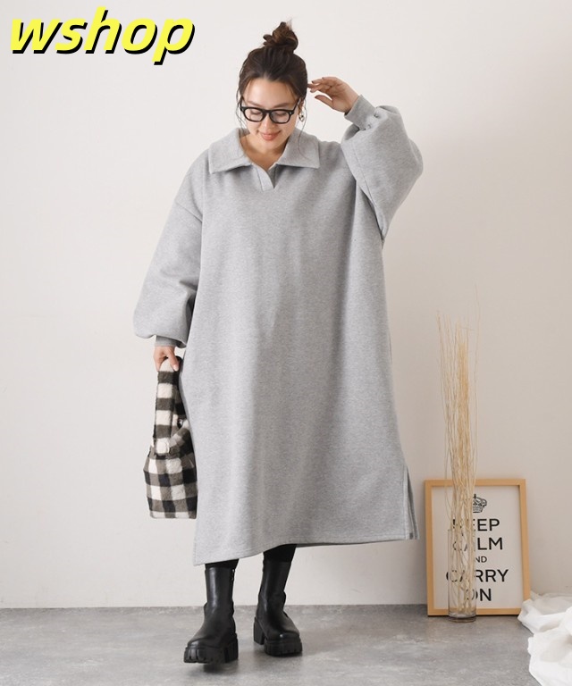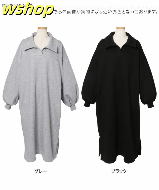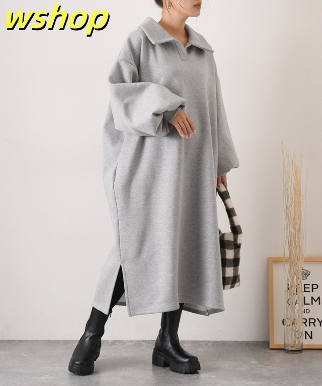 ●襟付きキーネック裏起毛ワイドスウェットロングワンピース