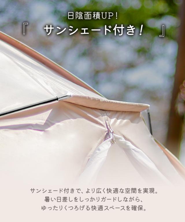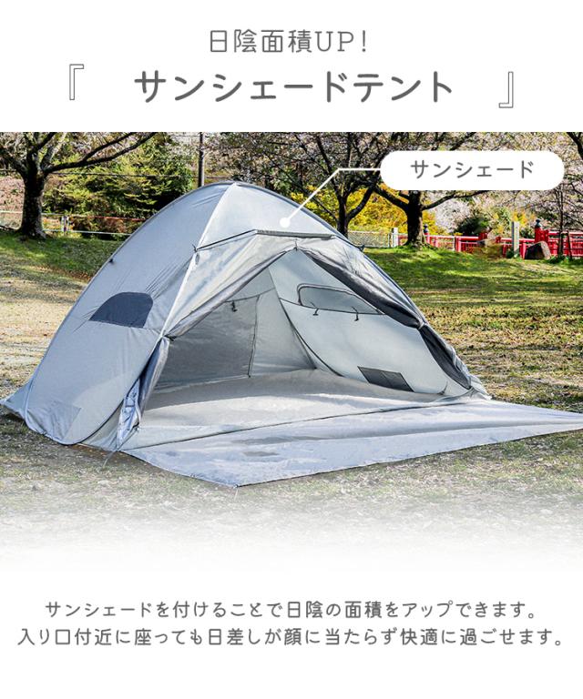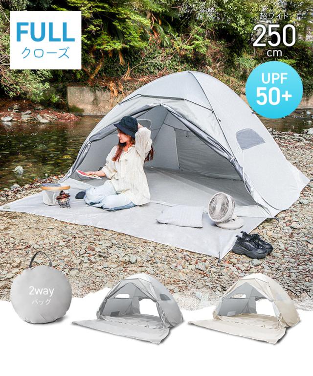テント ポップアップ ワイド 250cm ポップアップテント フルクローズ ワンタッチ サンシェード付 メッシュ 3-5人用 キャンプテント コンパクト 遮光 遮熱 UVカット 着替え アウトドア 海水浴 海 ピクニック 送料無料