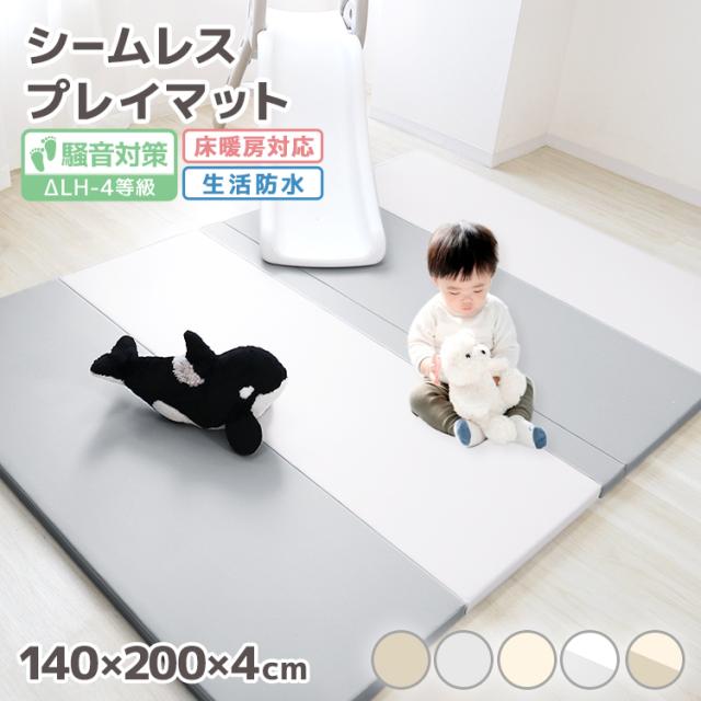 プレイマット シームレス 200×140×4cm ベビー 厚手 折りたたみ マットレス シームレスプレイマット シームレスマット シームレス 抗菌 防水 防音 赤ちゃん キッズ ベビーマット キッズサークル グレー 送料無料