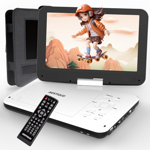 2025年新機種AESTIQUO ポータブルDVDプレーヤー 12.5型 dvdプレーヤー 10.5インチ液晶 cdプレーヤー車載用ホルダーリモコンリモコン用電池付 5時間連続再生 リージョンフリー CPRM対応 レジューム機能 270度回転 TV同期可能 SDカード/USBに対応 車載携帯式 軽量 操作簡単 ホワ