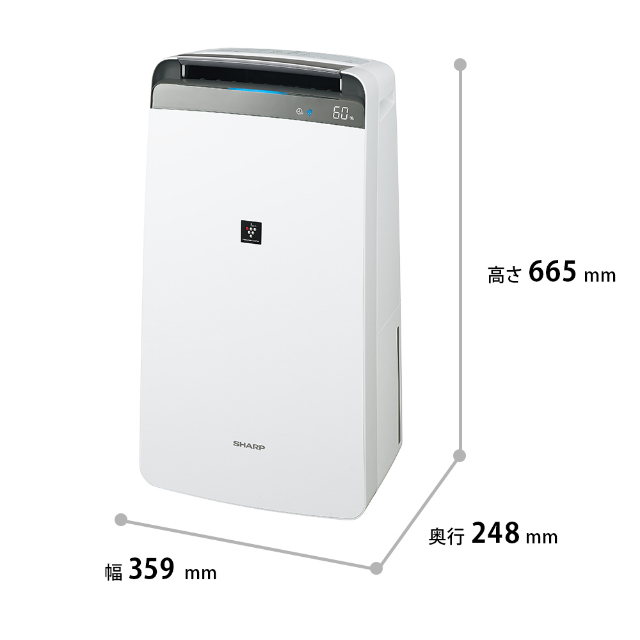 衣類消臭:強 52/52dB 弱 26/26dB排水タンク容量 約4.5L(ハンドル付) 外形寸法(幅×奥行×高さ) 359×248×665mm 質量 約16.5kg 注釈 ------------------------------