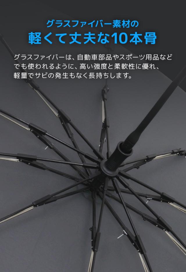 グラスファイバー素材の軽くて丈夫な10本骨を採用。