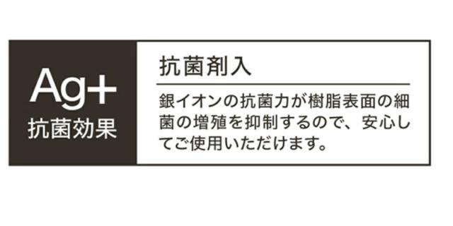 ●銀イオンの抗菌力で樹脂表面の細菌の増殖を抑制するバクテキラーを配合しています。(抗菌加工部分:本体・仕切り)