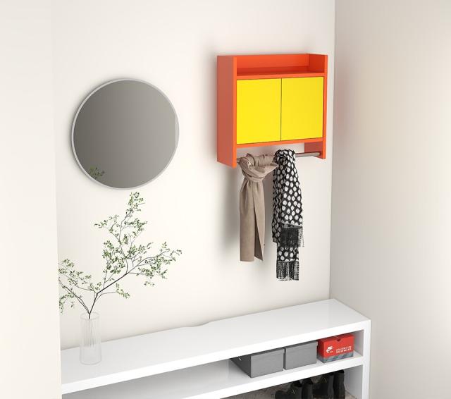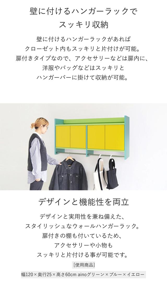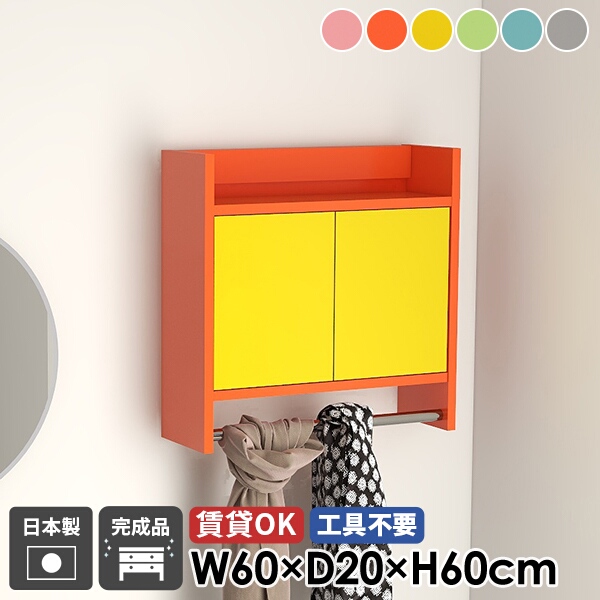 コートハンガー ウォールラック ウォールシェルフ ハンガーラック 壁掛けハンガーラック 洗面所 収納家具 キャビネット 扉付き 玄関 棚付き 壁付け 石膏ボード おしゃれ 日本製 壁掛け ハンガーバー ポールハンガー 完成品 可愛い 北欧 カラフル 賃貸 幅60cm ★