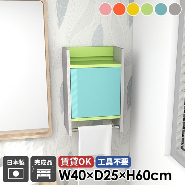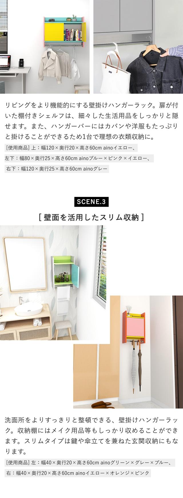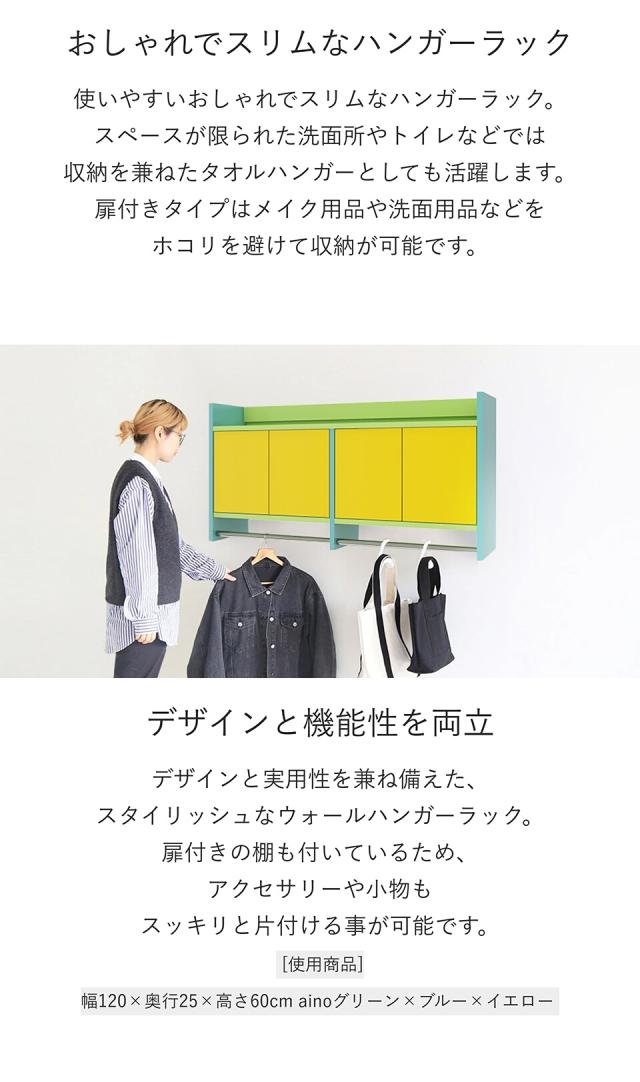 ウォールシェルフ ハンガーラック 壁掛けハンガーラック ウォールラック コートハンガー 扉付き キャビネット 収納家具 玄関 棚付き 洗面所 ハンガーバー ポールハンガー 石膏ボード 可愛い 壁付け 壁掛け カラフル 北欧 完成品 おしゃれ 日本製 賃貸 幅40cm ★
